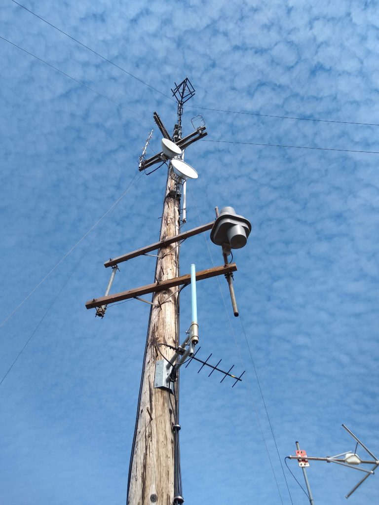 Here our trusty 70-something Tower Monkey Dan Mooney installs the microwave transmit antenna last November. This shoots Jive audio from it’s transmit location (Grizzly Mountain outside Madras, OR) about 20miles to our booster location in Bend.